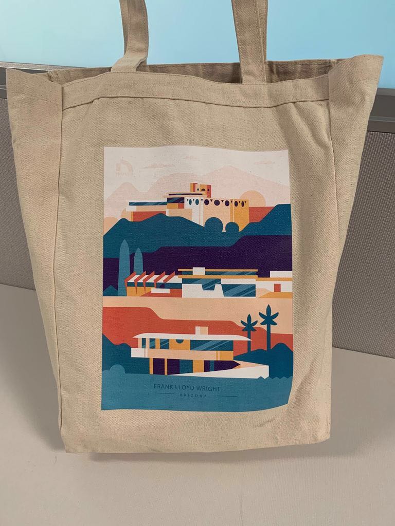 While working on our giveaway this year, Alex (at our request) drew inspiration from the work of American Architect, Frank Lloyd Wright. Wright spent decades in Arizona, and his work can be seen in and around the Phoenix and Scottsdale area, including the Arizona Biltmore Hotel and Wright’s home and studio complex at Taliesen West.
